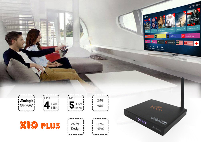 Với sự kết hợp của chip set S905W và hệ điều hành Android 7 mới nhất thì khả năng chơi Video của Vinabox X10 Plus cũng thực sự là đáng nể. Các bộ phim 4k, 3D bom tấn được xử lý hết sức mượt mà và thanh thoát. Công nghệ nén HEVC H.265 với khả năng nén gấp đôi so với chuẩn nén cũ H.264 nhưng không làm thay đổi chất lượng sẽ mang lại cho người dùng những trải nghiệm tuyệt vời nhất mà trước chỉ có trên những dòng ANdroid Box cao cấp mới có.