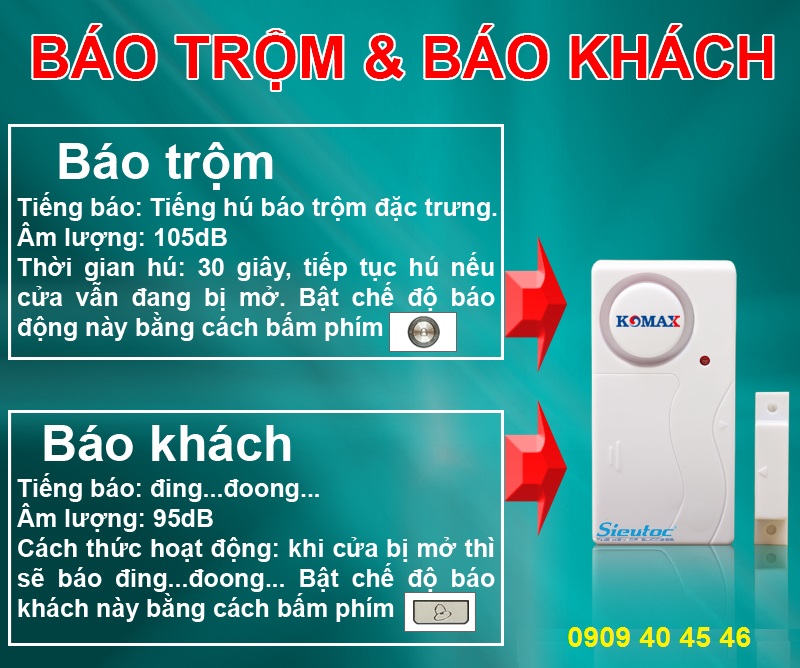 Từ chống trộm KM-C05 vừa có thể dùng làm báo trộm, vừa có thể dùng làm báo khách