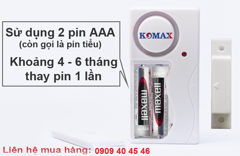 - Pin bộ phận báo động: 2 pin AAA (khoảng 3-4 tháng thay pin 1 lần)