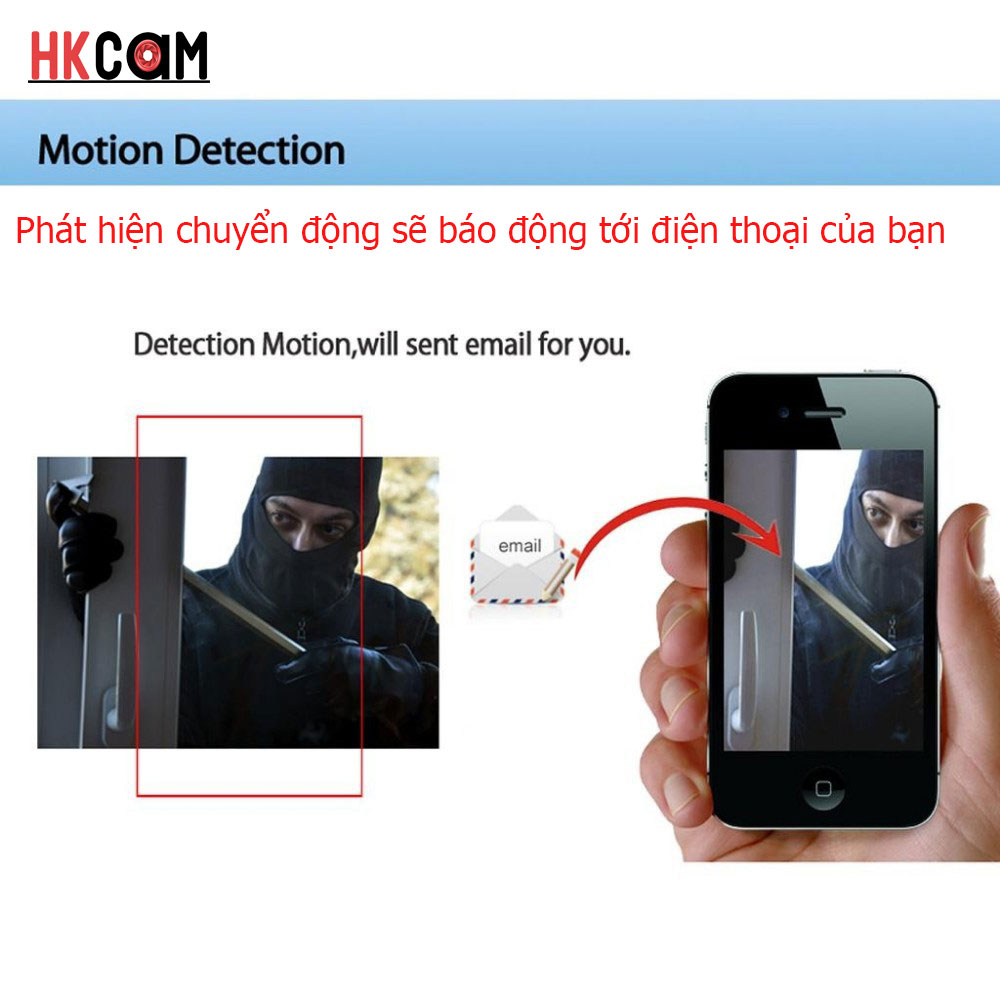 Ghi hình 24/24h, có khả năng phát hiện chuyển động và báo động tới điện thoại của mình.