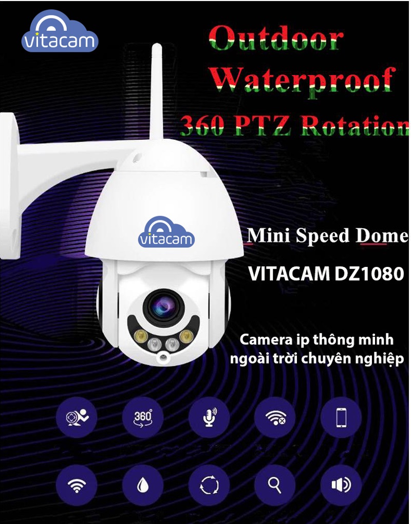 Cuối năm 2018, Vitacam tự hào tung ra thị trường dòng camera mini Speed Dome PTZ ngoài trời thông minh Vitacam DZ1080 với chất lượng hình ảnh sắc nét đạt Full HD 1080P, độ phân giải camera 2.0Mpx, đặc biệt hỗ trợ các công nghệ camera ip thông minh kết nối wifi, quay quét 350 độ ngang, 120 độ dọc giúp chiếc Vitacam DZ1080 có góc nhìn toàn cảnh siêu rộng.