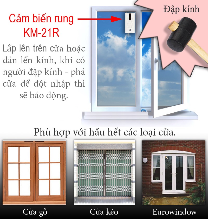 Được gắn cho những nơi mà chủ nhân sợ trộm không cần cạy cửa như: cửa kiếng thường hoặc kiếng cường lực, tủ ....